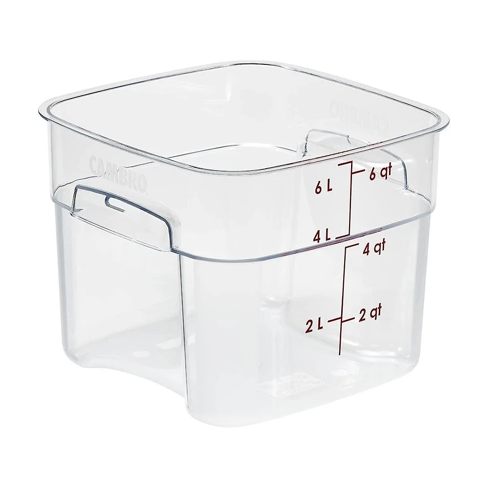 You will love the new CamSquares® FreshPro Series Food Storage Containers from Cambro®. These containers are made from durable Camwear® and feature molded-in, recessed handles so the containers take up less space than traditional storage options. The FreshPro’s curved corners and textured grip enable safer, four-sided pouring and easier handling.