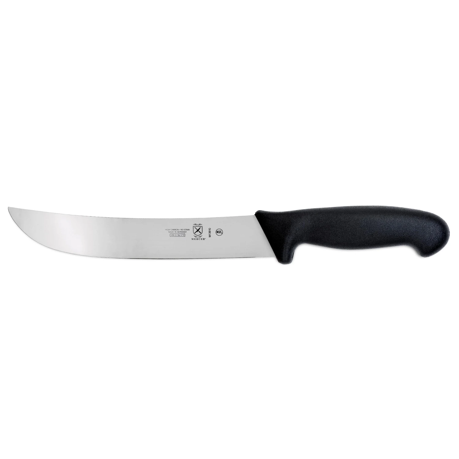 This Mercer Culinary® Cimeter Knife can be used to butcher large pieces of meat. The curved 10″ blade allows for a single pass cut to remove bones. It is finished with a textured black polypropylene handle for a better grip.