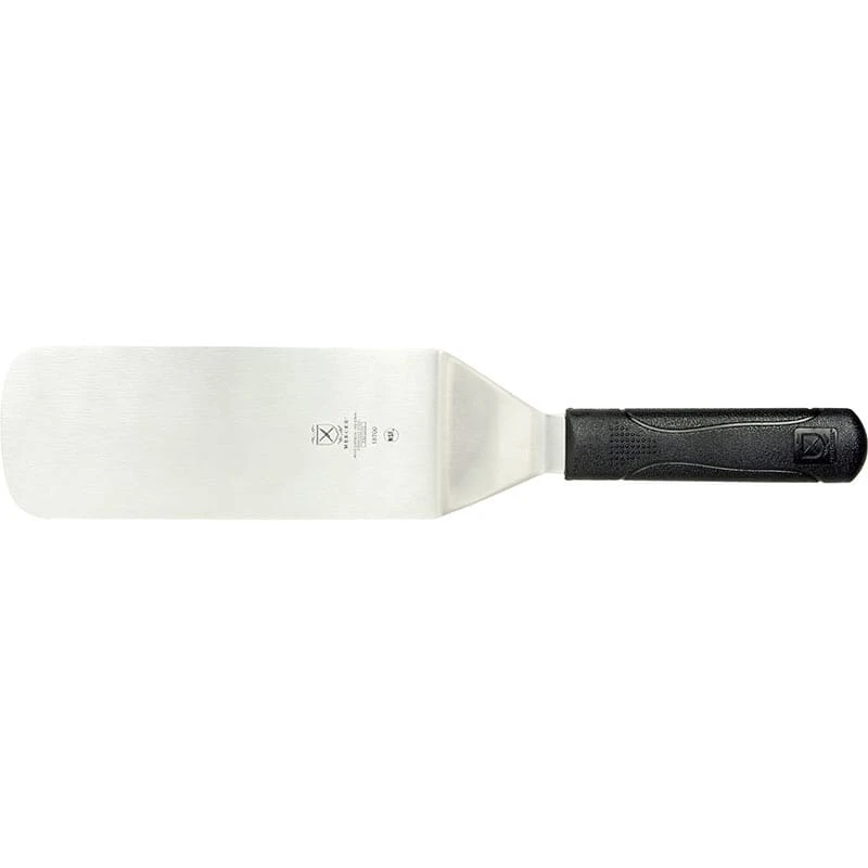 This Mercer Culinary® Millennia® Turner has an 8″ x 3″ blade and is great for grill work in commercial kitchens. It features a molded black handle which provides a sure grip, and helps assist with color-coordinated food safety practices.