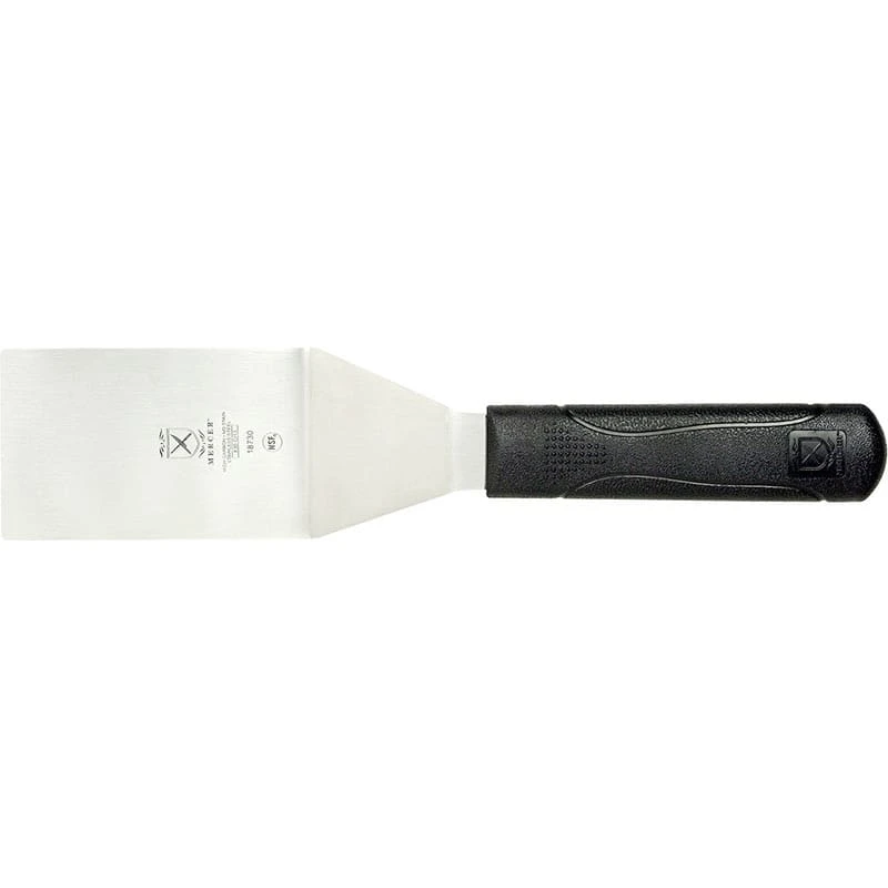 This Mercer Culinary® Millennia® Turner has a 4″ x 2.5″ blade and is great for grill work in commercial kitchens. It features a molded black handle which provides a sure grip, and helps assist with color-coordinated food safety practices.