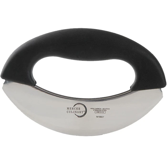 This Mercer Culinary® Mezzaluna can be used to chop herbs, garlic, and other small foods. Its sharp blades make clean cuts and it has a rubberized one-piece handle.
