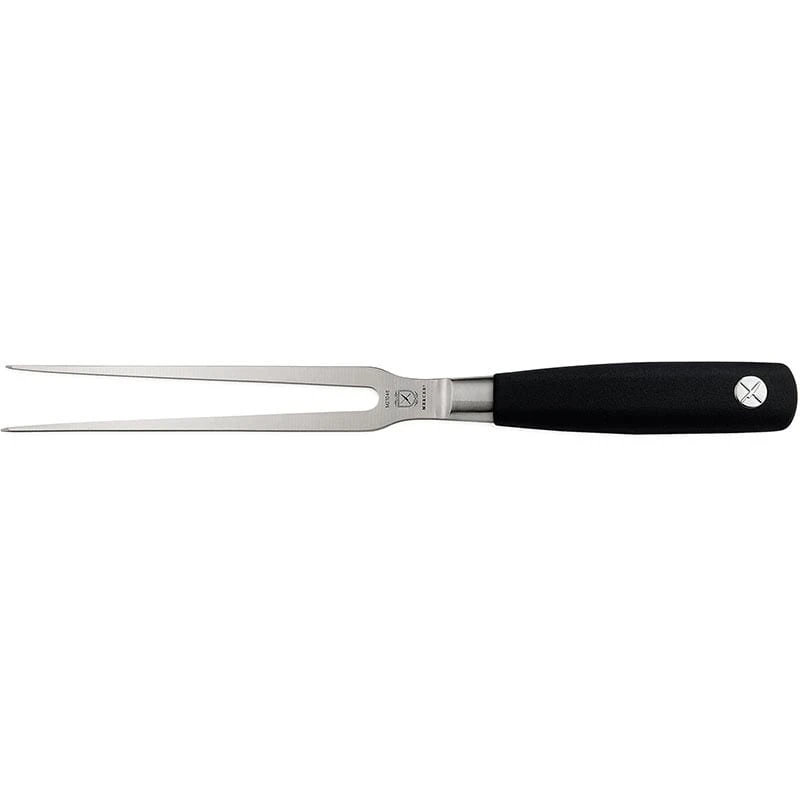 This Mercer Culinary® Genesis® Straight Fork holds food steady while carving and has a non-slip handle. It is made from high carbon German steel and has an ergonomic black Santoprene® handle.