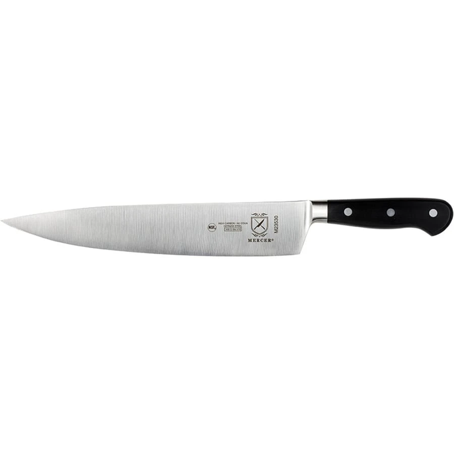 This Mercer Culinary® Renaissance® Chef’s Knife can be used to chop, dice, mince, or slice produce and other ingredients. It features a taper ground German steel blade and an ergonomic handle. A rounded spine ensures a comfortable grip during use.