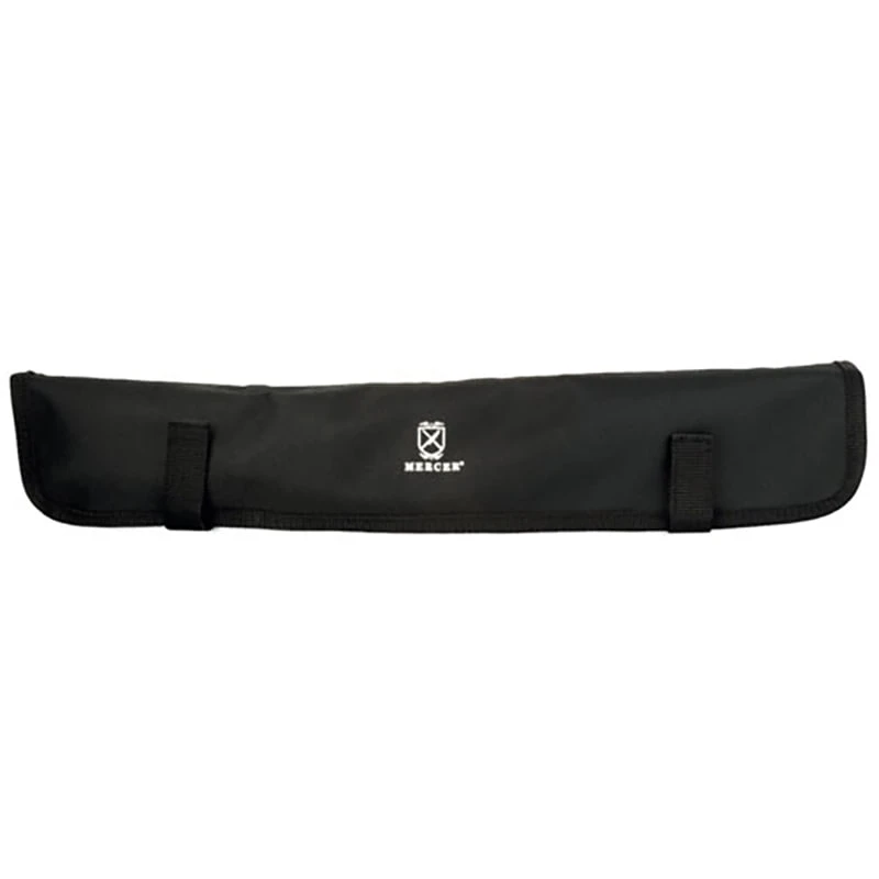 This Mercer Culinary® Knife Roll allows you to easily take your knives with you wherever you go. It has four elastic pockets and a hook-and-loop closure. Cutlery not included.