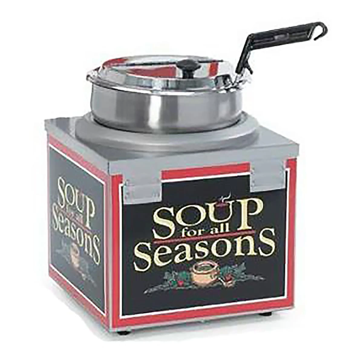 Turn your customers on to the idea of a hearty bowl of soup with these functional and inviting soup merchandisers from Nemco®, each adorned with a contemporary graphic theme. The stainless steel construction upholds an attractive appearance and ensures durability, while the unique heating element design maintains an even holding temperature and prevents hot spots.